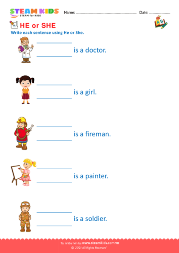 – Mô tả: Workbook Tiếng anh chủ đề Pronouns dành trẻ 4-6 tuổi