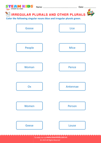 – Mô tả: Workbook Tiếng anh chủ đề Nouns dành trẻ Lớp 4-5