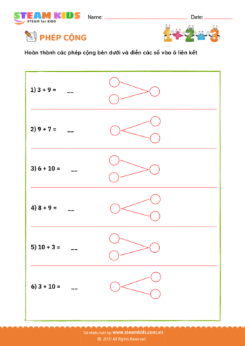 Toán tư duy phép cộng Lớp 1 – Workbook 2